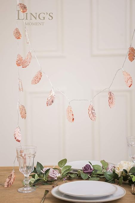 Ling S Moment Rose Gold Feather Lantern String Lights 8ft 20 Led Battery Powered Copper Metal For Party Decorations Bedroom Decor Fairy Lights