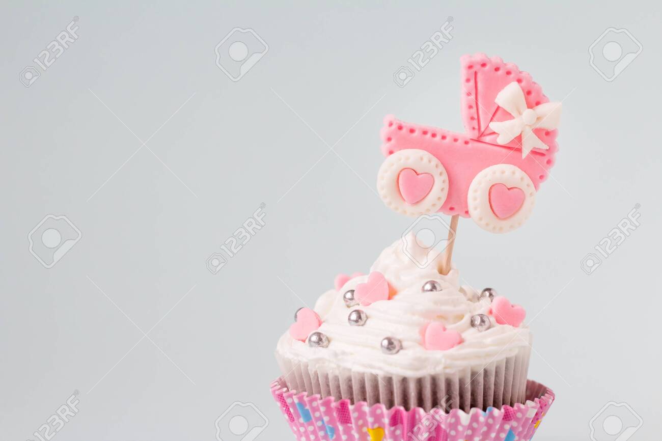 Baby Shower Cupcake Welcome Baby Girl Concept Newborn Announcement